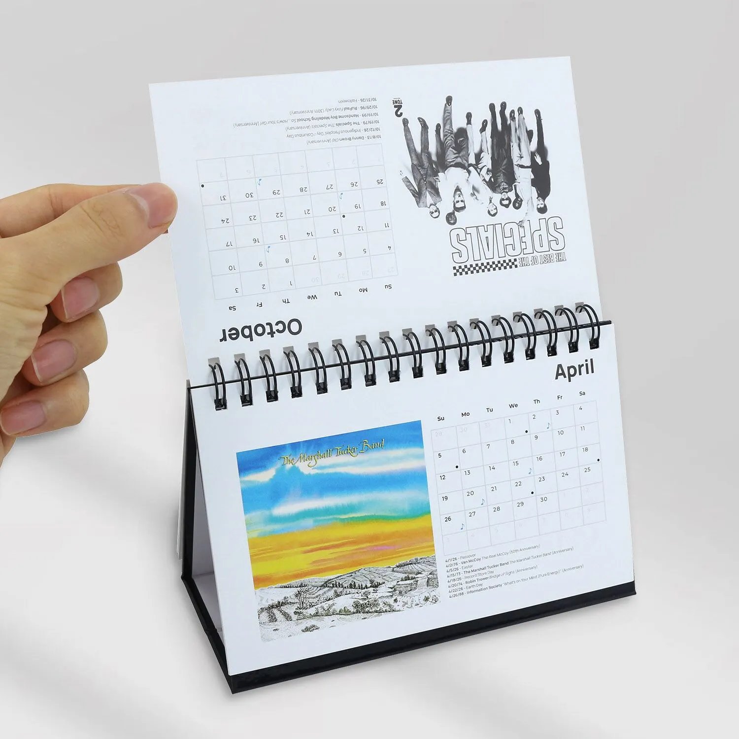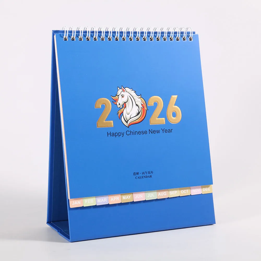Since desk calendars feature a folded stand frame, we generally recommend Wire-O binding to ensure smooth page turning, strong durability, and a neat, professional look. This binding method allows the calendar to sit flat and flip easily without damaging the structure. In some cases, customers may prefer ring binding as an alternative, especially when a more flexible or replaceable page format is desired.
