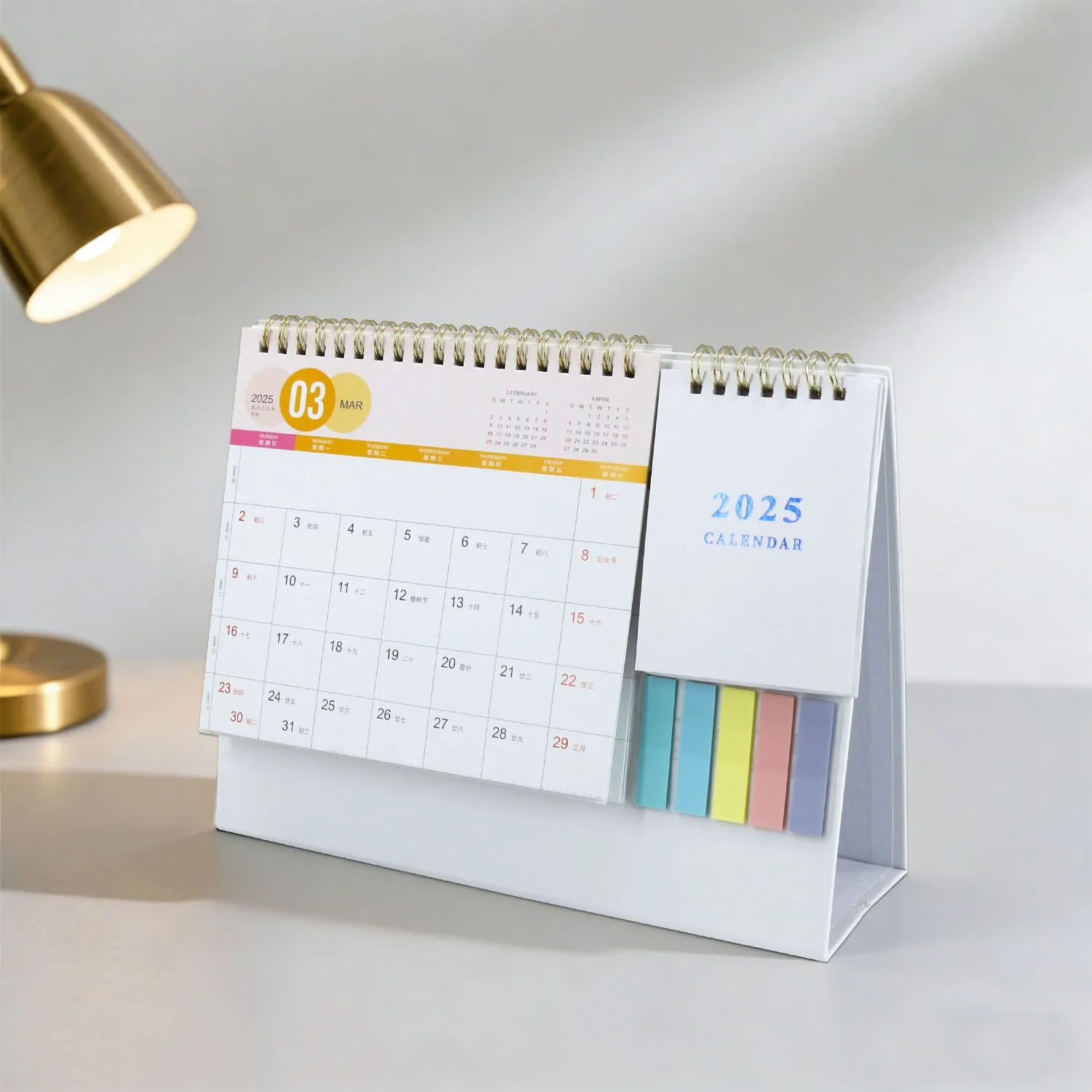 Desk calendar with sticky notes combines monthly planning and quick reminders, offering convenient organization for offices, schools, and daily use.