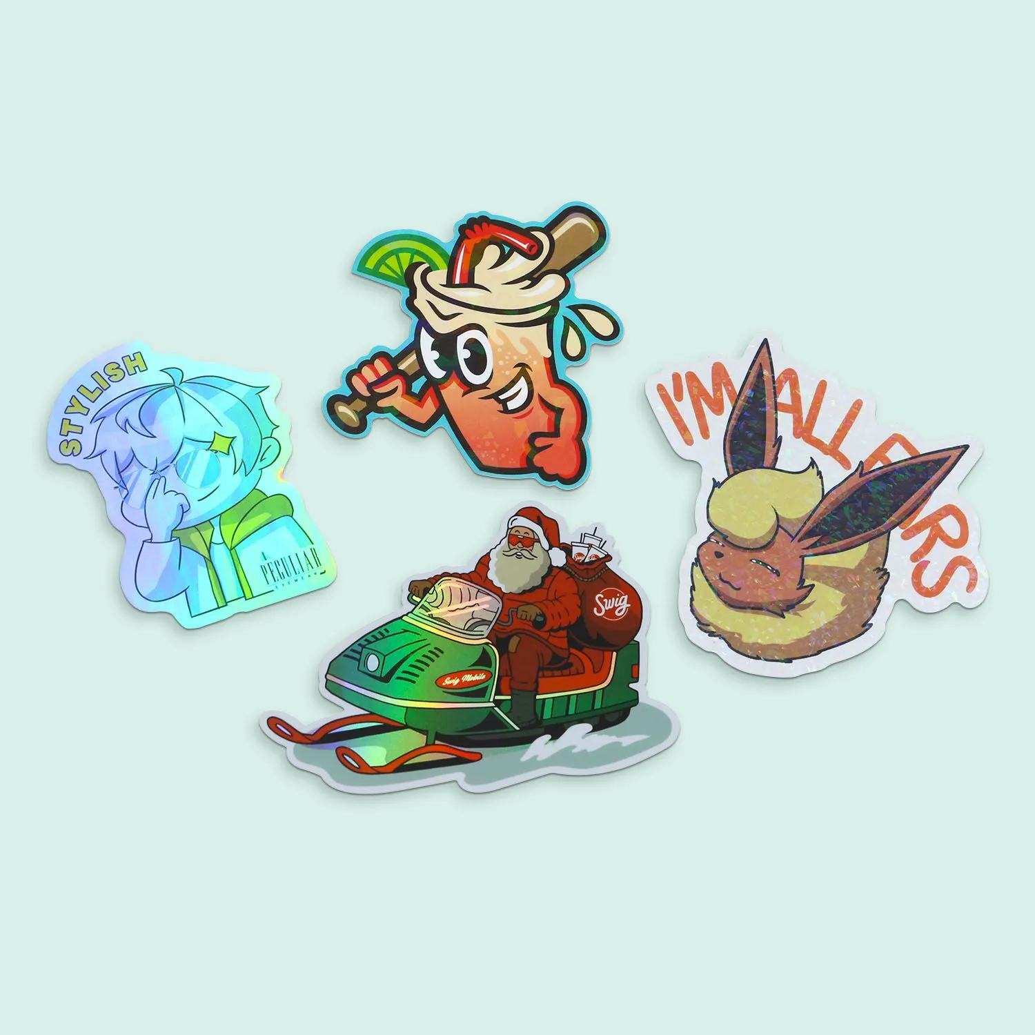 Holographic stickers shimmer with rainbow effects, making designs vibrant, eye-catching, and visually striking.