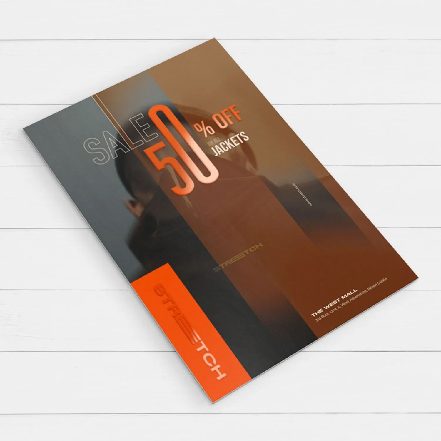 • Standard Letter (8.5″ x 11″) or A4/ 8.3″ x 11.7″: Most common for marketing, posters, and event promotions.