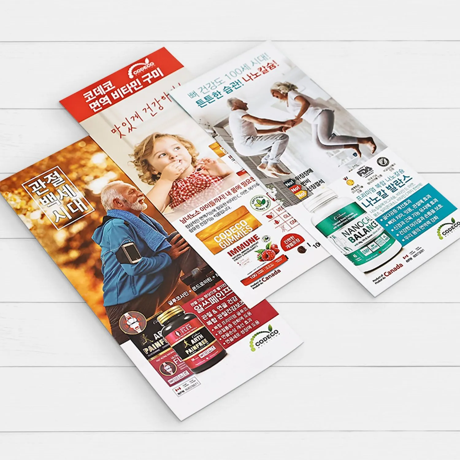 Z-fold flyer printing is ideal for step-by-step content, timelines, or product features, offering a clean, organized layout that’s easy to follow.