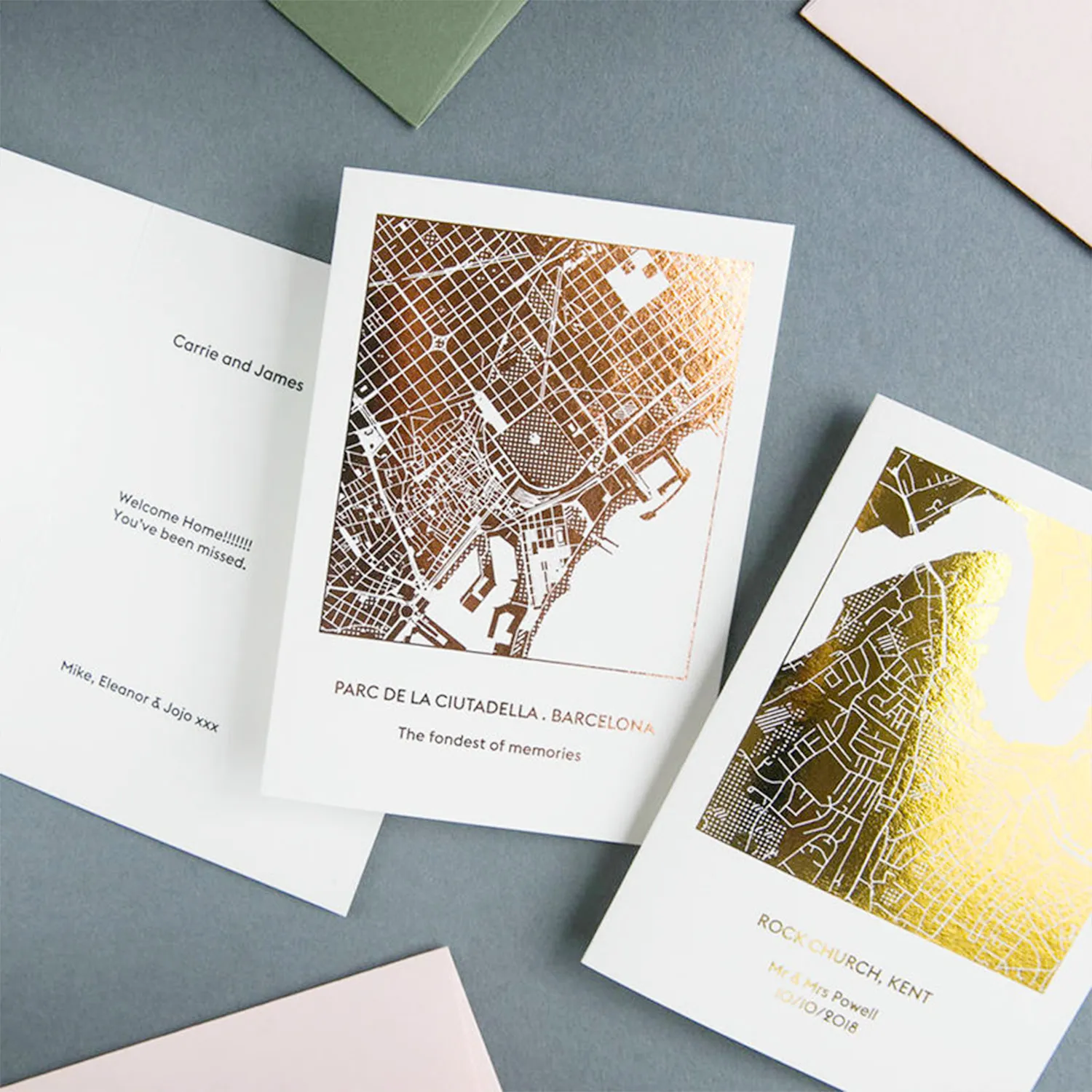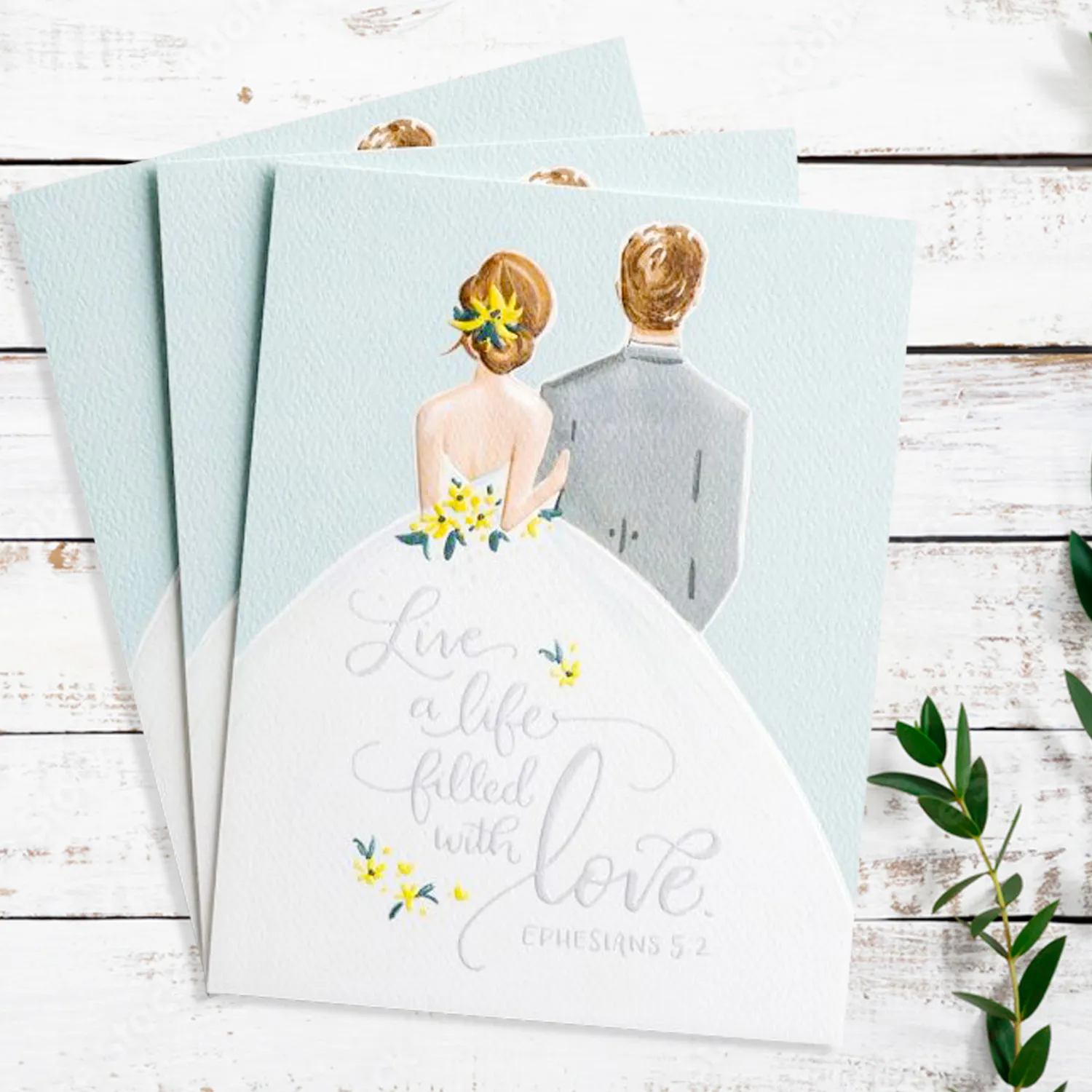 Embossing raises design elements, adding texture, depth, and a premium, tactile feel to greeting cards.