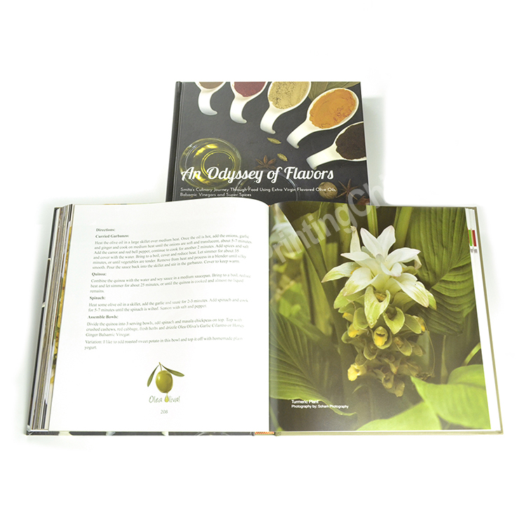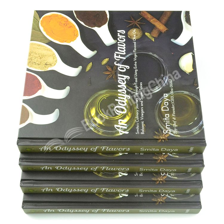 This is many surface options that you could choose to create your cookbooks. With glossing lamination, matte lamination, spot UV, die cutting, foil stamping with gold, silver or other colors, varnishing, etc.