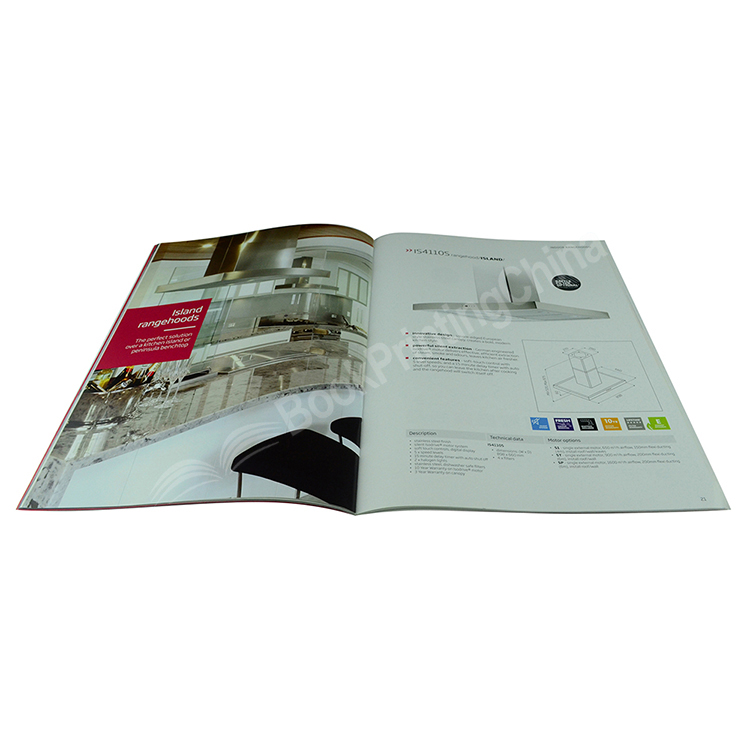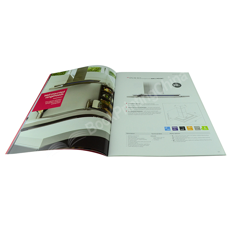 This is a saddle stitch binding catalogue, the price is cheap. If you don’t have much budget you can choose this kind of binding, we will finish in professional quality. The advantages of this catalogue is cheap price and fast delivery.
