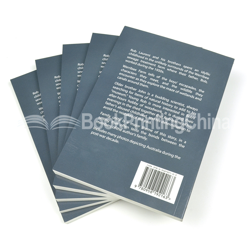 Perfect binding – Pages are stacked and milled along the spine to improve the bond between the paper and the glue. This kind of binding is cheaper than perfect binding with sewn, but the pages are easy to fall off.