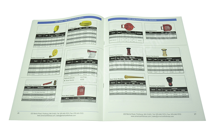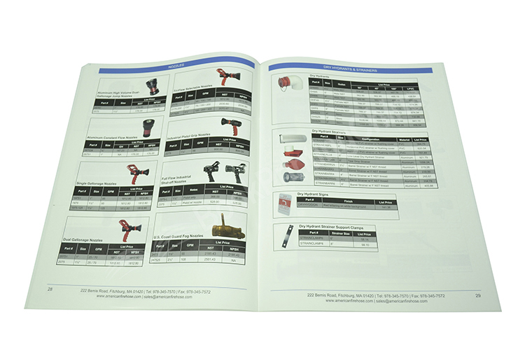 This is a catalogue which introduce company products. Matt lamination for the cover looks more natural. Saddle stitch binding is short production time and low cost. Most company select this binding way.