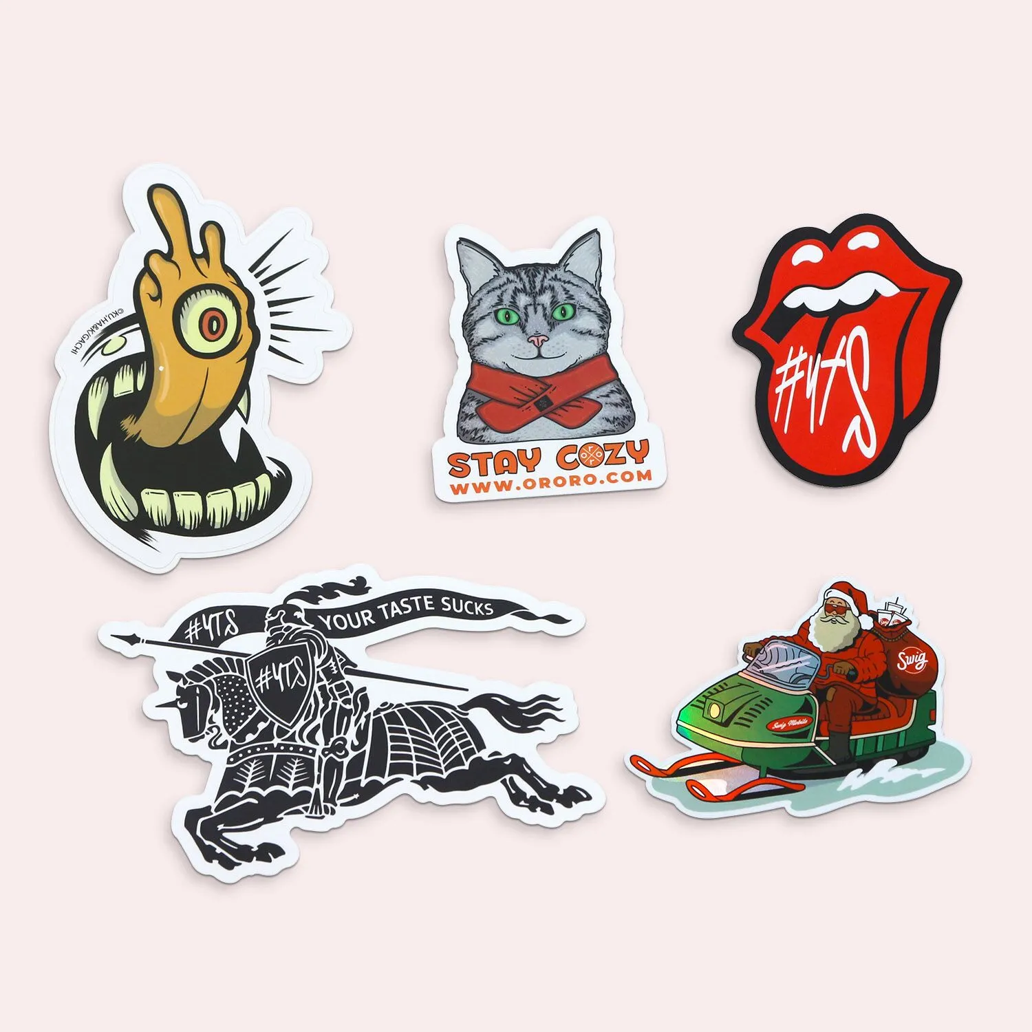 Each pack can include multiple individual stickers, often in different shapes and sizes, such as die cut or kiss cut stickers. This makes sticker packs ideal for branding collections, themed artwork sets, or merchandise bundles.