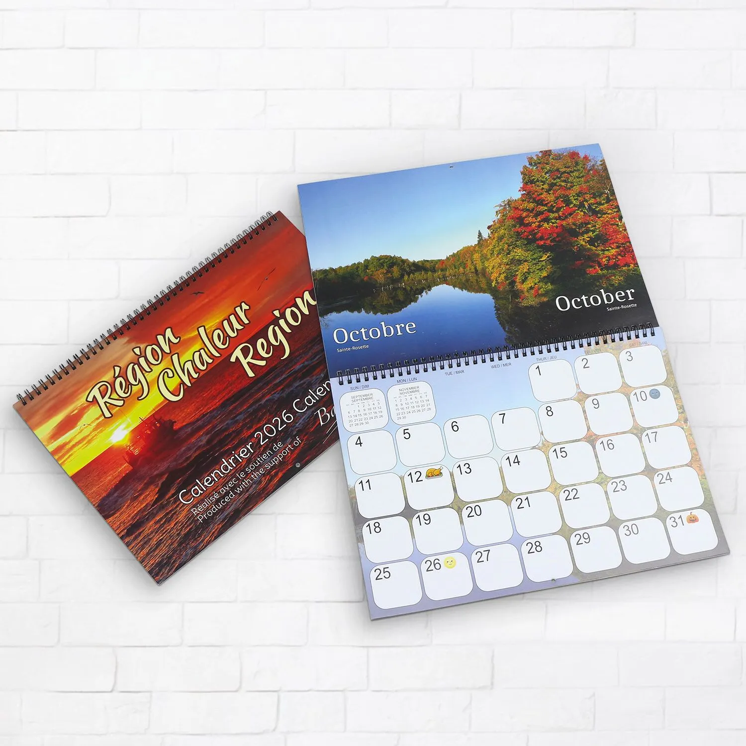 Wall calendars, also known as hanging calendars, are practical and highly visible promotional tools that keep your brand in front of customers all year long. A custom, high-quality wall calendar is a cost-effective marketing solution, combining everyday functionality with strong visual impact.